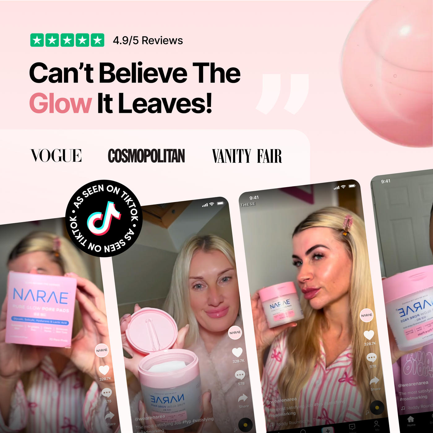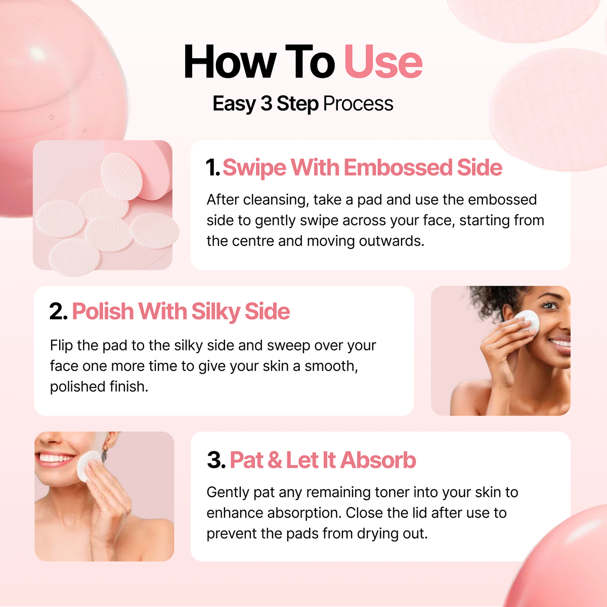 Pre-soaked, dual-textured pads make it easy to stay consistent swipe, glow, done.